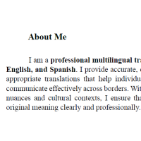 - Detail-oriented, versatile, and results-driven, I use my language expertise to facilitate effective communication in international and multicultural contexts.